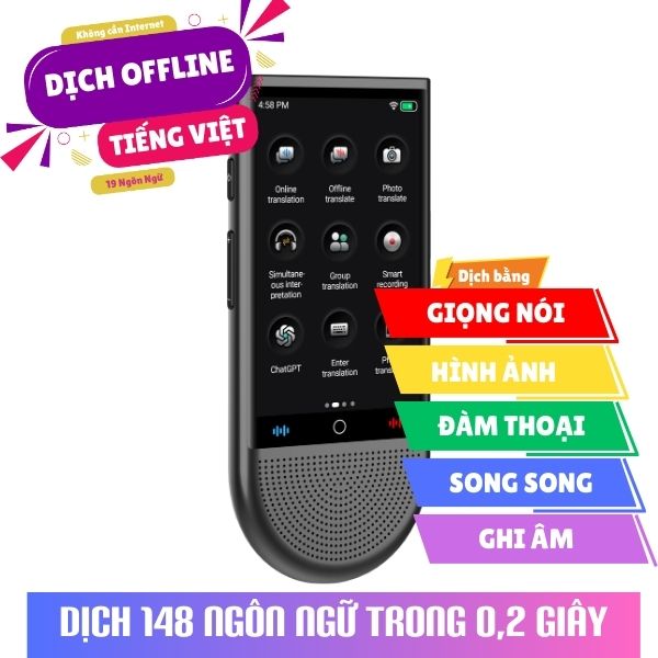 Máy dịch ATalk Pro S được thiết kế để đáp ứng mọi tình huống giao tiếp. Bạn có thể dễ dàng sử dụng nhiều chức năng dịch như dịch giọng nói, dịch hội thoại, dịch ảnh, dịch ghi âm chỉ với vài thao tác đơn giản. Máy vẫn hoạt động ổn định và dịch nhanh ngay cả khi không có mạng, rất hữu ích cho các cuộc trò chuyện dài.